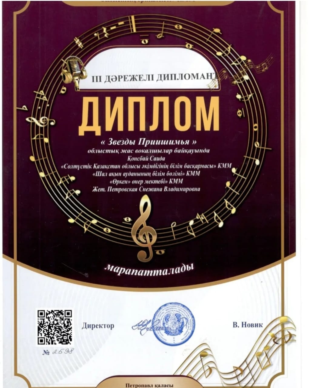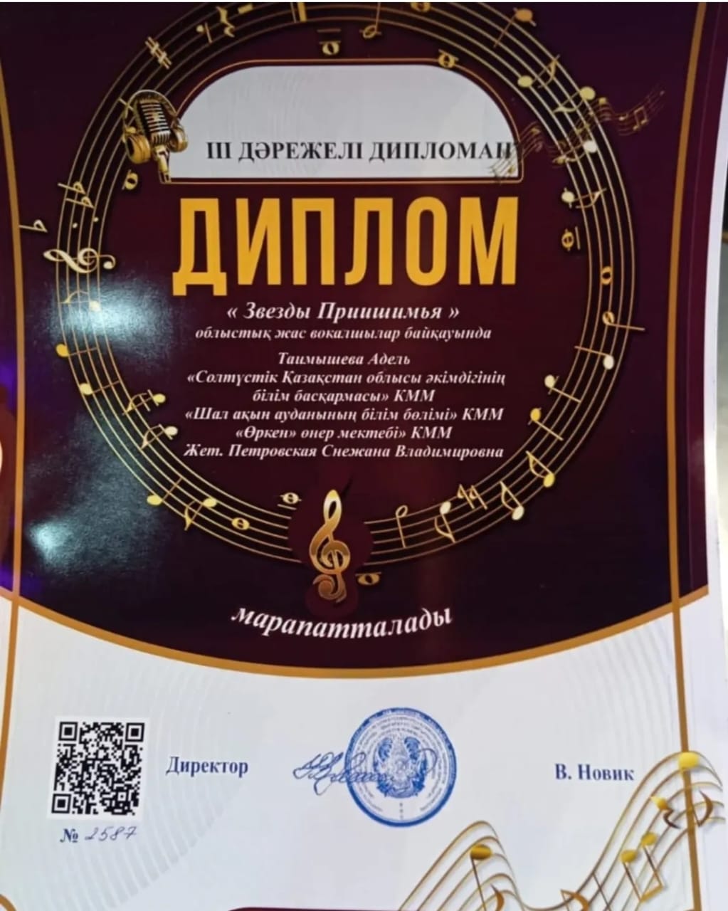 Наурыздың 16-сы күні облыстық балалар мен жасөспірімдер шығармашылық орталығында "Звезды Приишимья" байқауының екінші кезеңі өтті. Байқауға біздің мектебіміздің тәрбиеленушілері қатысып Таймышева Адель-ІІІ орынға және Қонысбай Саида-ІІІ(педагогы Петровская С.В.) орынға ие болды. Оқушыларымызды құттықтай отыра, алдағы уақытта жетістіктерге жете берулеріне тілектеспіз!