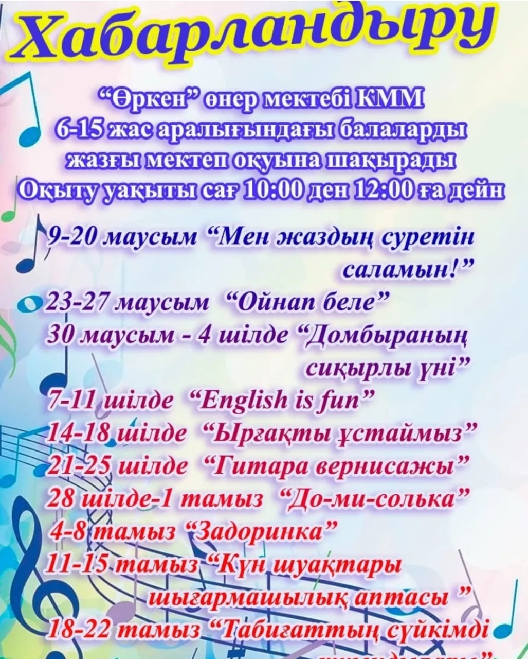 «Солтүстік Қазақстан облысы әкімдігінің білім басқармасы» КММ «Шал ақын ауданының білім бөлімі» КММ «Өркен» өнер мектебі» КММ